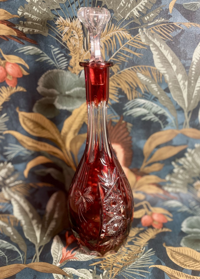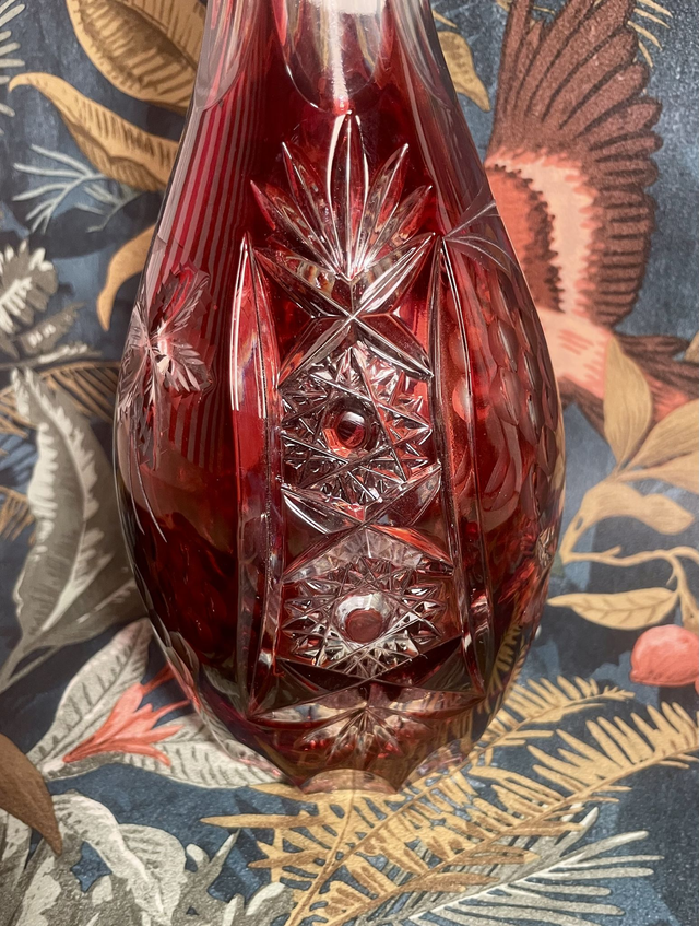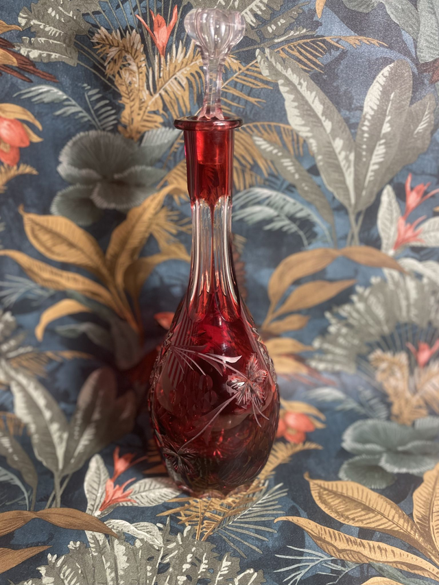 Nachtmann Traube : Très belle Carafe en cristal de Bohême taillé de couleur rubis à motif floraux.